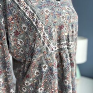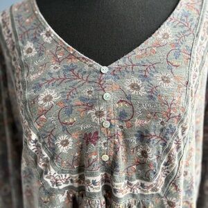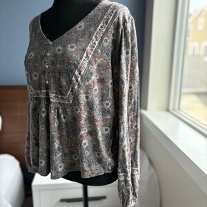 Lucky Brand Sage Green/Gray Floral V-Neck Peasant Top - Coastal Cowgirl Y2K