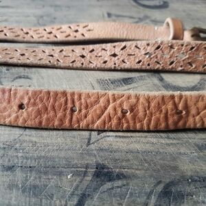 J.CREW Vintage Taupe Brown Leather Eyelit Laser-Cut Perforated Slim Belt SZ S