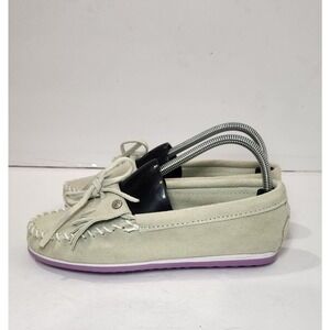 Minnetonka Womens Kilty Plus Moccasin Sz 8 Green Purple Suede Flat Slip On Shoe