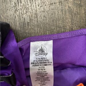 Charming Minnie Mouse Witch costume in purple and orange. Ideal for Halloween fun. Features starry accents and playful design. From 2023 Disney Springs. Near Perfect condition.