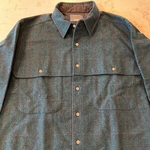 VINTAGE Pendleton Board Shirt Medium Blue Loop Collar Virgin Wool 70s Shacket
