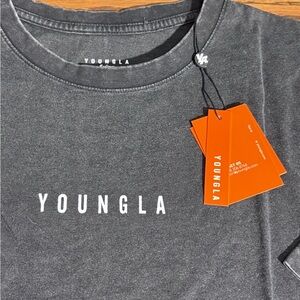 YoungLA 4048 Mens M Black Washed Cotton BlackLetter Logo Oversized SS Tee NWT