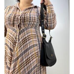 Vintage Coach Crescent Bag Black Leather Purse Handbag 9235 With Flap Seam