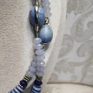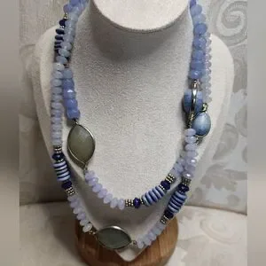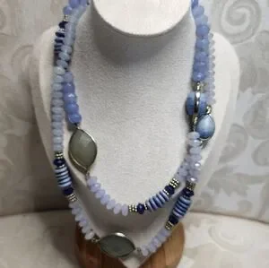 Vintage ‘90s CHICO‘s extra long blue beaded necklace with faceted stone accents