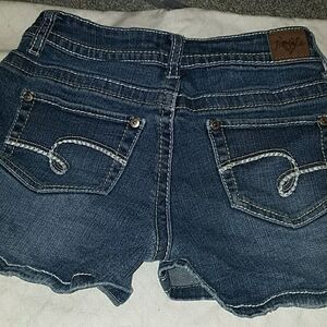 Justice shorts blue really nice daughter didnt wear them when she was younger No holes no stains no wear