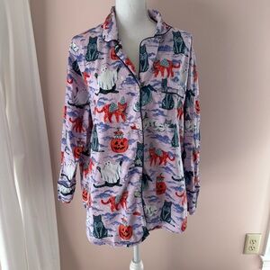 Printfresh Halloween House Cats Purple Pajama Top Size 1X