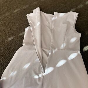 Oatmeal/greige double lined shift dress with deep pockets. This dress holds it shape and has darting to fit form. Discontinued design.