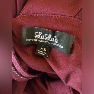 Lulu’s, Dazzling Decadence, Burgundy Maxi Dress, Evening Wear, Formal Dress, Special Occasion, Sheer Mesh Inset, V-neck, Floor-length, Elegant, Sophisticated, Pleated Bodice, Sleeveless, Flattering Fit, High-quality Material.