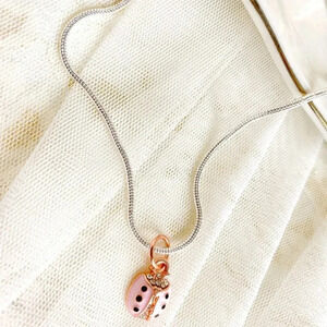 Cute Pink LadyBug Rose Goldplated Pendant Silver plated Necklace 18"