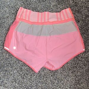 Lululemon Run: Pace Shorts in Bleached Coral / Dune / Pop Orange, size 4. Great preloved condition