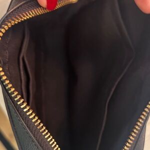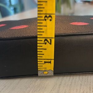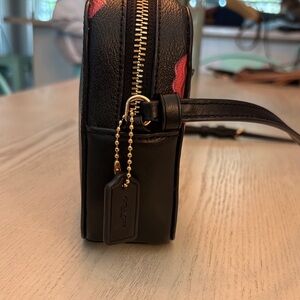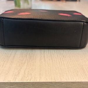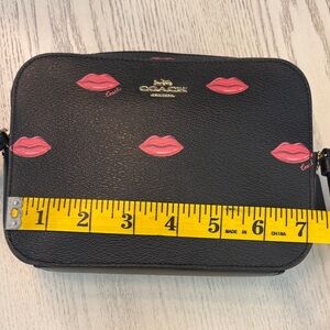 Chic Coach crossbody bag with pink lips pattern on black. Adds flair to any look. No stains inside or out. Elevate your looking this fun crossbody! Check out the matching card holder in my closet!!