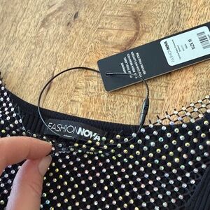 Elegant black bodysuit with long sleeves. Deep V-neck design. Perfect for a night out.