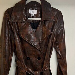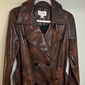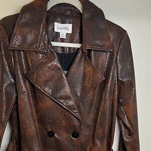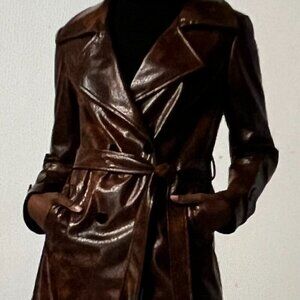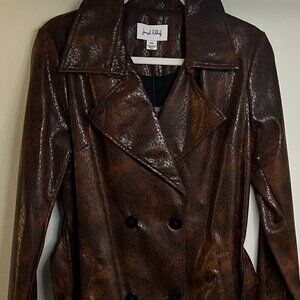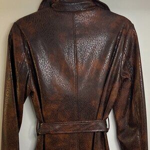 Joseph Ribkoff Brown Faux Leather Belted Double-Breasted Coat Size M