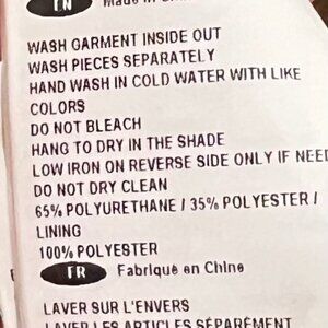 Care: Hand wash in cold water with like colors. Do not bleach. Hang to dry in the shade. Do not tumble dry. Low iron only if needed. Do not dry clean. Wash pieces separately. Wash garment inside out. Exclusive of trims. Low iron on reverse side only if needed.