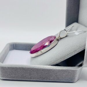 This stunning necklace features a vibrant red pendant set in elegant silver. Perfect for adding a touch of sophistication to any outfit.