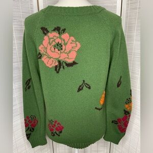 Ivko Woman Floral Intarsia Sweater Green Wool Nylon Viscose Knit Pattern Size S