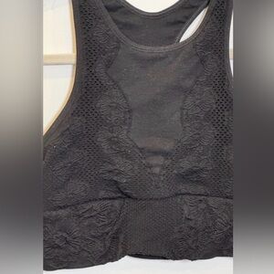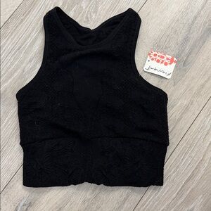 Stylish black cropped tank top. Perfect for workouts or casual wear.