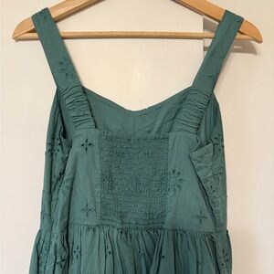 J. Crew Teal Embroidered Eyelet Midi Dress