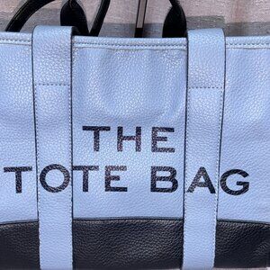 NOT MARC JACOBS! This fashion tote bag is super cute and on trend. The leather exterior and faux leather interior will hold all of your work supplies or your lunch! Measures 10x12x4.5".