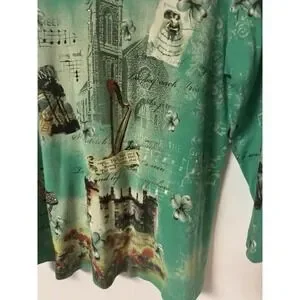 Christopher & Banks Women's Size L Irish Theme Cotton 3/4 Sleeve Cotton Shirt