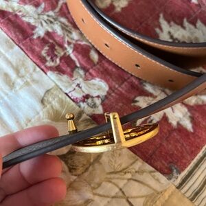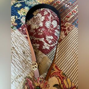 EUC Reversible Tory Burch Miller Belt Tan and Black Gold Logo