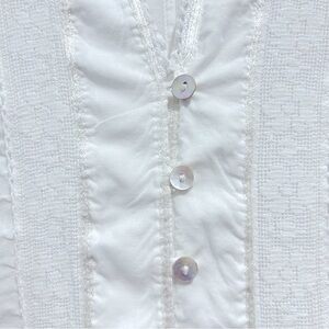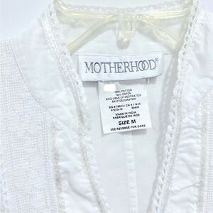 Motherhood Women’s White Cotton Lace Embroidered Button Down Shirt, 100% cotton, size Medium. Approximate measurements: chest (pit to pit) 20.5”, length 25”. ***Bundle to save on shipping and get 10% discount. The discount will appear automatically in your basket during checkout if you have 2+ items from my closet.
