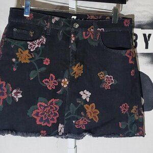 7 For All Mankind Black Denim Floral Mini Skirt sz 28w