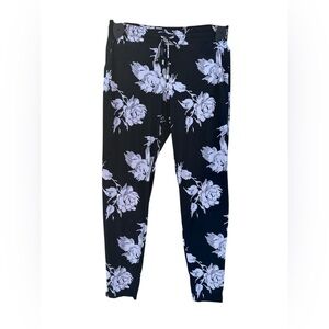 INC Petite Black Bloomcore Floral Romantic Jogger Pants Pockets Drawstring Waist