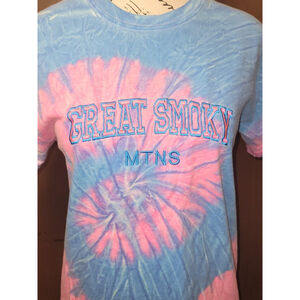 Women's Sz S Great Smoky Mountains Blue Pink Purple Tie Dye T Shirt