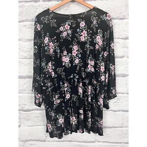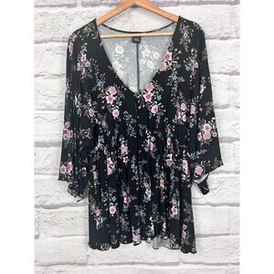 Torrid Womens 1X Boho Floral Feminine Peasant Empire Waist Flutter Sleeve Tunic