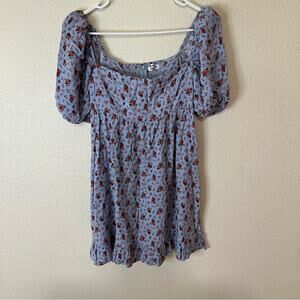 Reformation Bristol blue floral mini dress puff sleeves in petunia SIZE SMALL