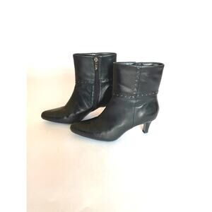 Tahari Black Leather Ankle Boot Heeled Studded Size 7M