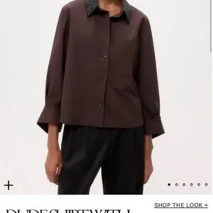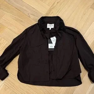 Stylish black shirt with a sequin collar. Perfect for a chic look.