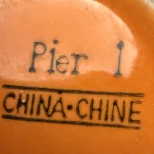 Bright orange mugs with elegant leaf designs. Perfect for adding a natural touch to your table. These are Rare find! This item is hard to come by! Pier 1 Orange mug with butterfly and leaf pattern. 16 oz. A sturdy mug for tea or coffee or hot chocolate. measurement bottom 2 1/2 and diameter top is 3 3/4 inches in diameter and the height is 4 1/2 inches in diameter and the width including the handle is 5 1/2 inches. Great condition there's no cracks, stain ,chips, or crazy.