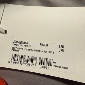 The Jil Sander Small Orange Tangle Leather Crossbody Bag is a stylish and compact accessory designed for women. With a sleek exterior crafted from leather in a vibrant orange color, this small-sized bag is perfect for carrying essentials on the go. The crossbody style offers convenience and versatility, making it a practical choice for everyday use. The tangle model from Jil Sander adds a unique touch to the design, while the orange lining color complements the exterior. Embrace the fashion-forward look of this chic handbag for any outfit. New with tags and dust bag.