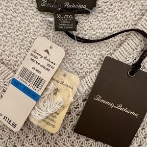 Tommy Bahama V-neck Open Knit Long Sleeve Lightweight Shark Bite Hem Pullover XL