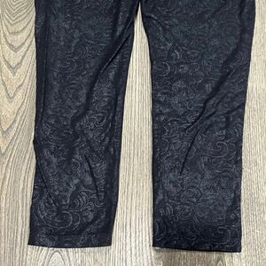 Seven7 Baroque Skinny Pants Mid-Rise Faux Leather Floral Preppy Black Size 8