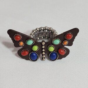 Butterfly Stretch Ring With Multicolor Faux Stones & Beaded Stretch Band