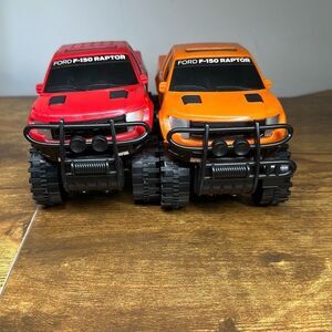 Ford F-150 Raptor Red Orange Plastic Truck set of 2 Made in China