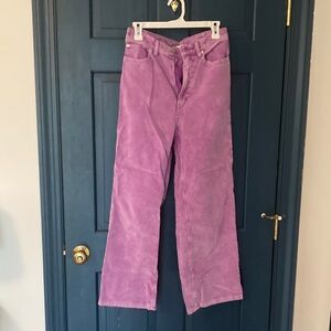 Vibrant purple corduroy pants. Relaxed fit with classic design. Perfect for casual wear.