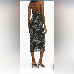 Elegant floral halter neck dress perfect for any occasion. Features a stunning black base with vibrant floral patterns. Ideal for a chic and stylish look.