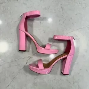 Madden Siren Pink Patent Platform Block Heel Sandals Women’s 8.5 Barbiecore
