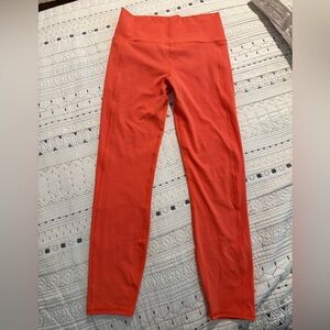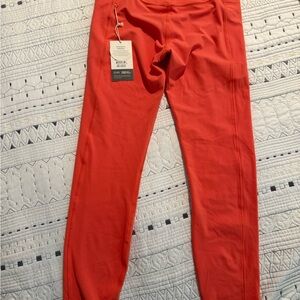 Vibrant grapefruit leggings by Vuori. Perfect for active wear.