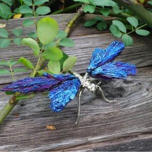 🆕New Aura Blue Tourmaline Dragonfly Figurine- Silver