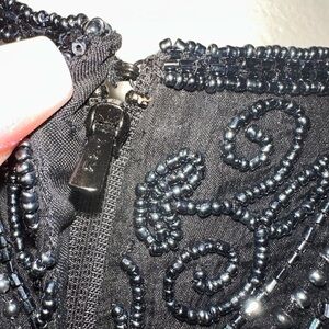 Vintage Papell Boutique Evening black beaded silk formal scalloped blouse M