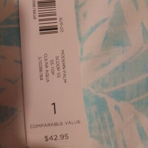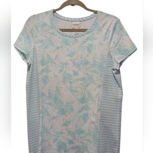 Chico's. - NWT, Turquoise & White Floral Design, Short Sleeve,Round Neck, Size 1