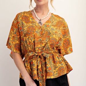NEW EASEL PAISLEY PRINTED CREPE PEPLUM TOP BLOUSE SMALL BOHO RELAXED FIT