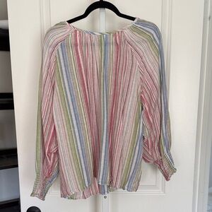 Elevate your wardrobe with this stylish striped multicolor top. Perfect for any occasion, this top features a blend of vibrant colors that add a pop to your outfit.