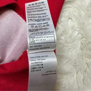 Some bleeding and discolouration of dyes on the sleeves from washing (see photos). Someone who knows what they’re doing may be able to get rid of it. Overall however, shirt is still very wearable and in overall good shape.