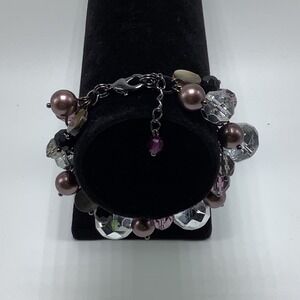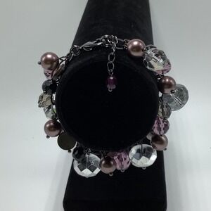 Purple, Clear, Black, Smokey, Silver, Copper Beads & Mother of Pearl flat bead